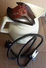 TWYLITE JUG LIGHTNING FLASH VOLTS - - - - WATTS Height = 225mm ( 8-3/4") THE BAKELITE LID INCLUDES OLD PLUGS & LEAD CAN BE PICKED PLUG INFO BELOW |